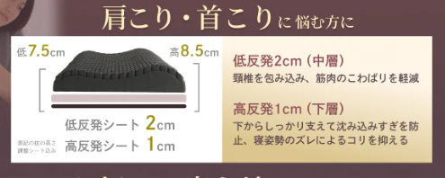 例えば、首のカーブが強い方は高反発シートを複数枚重ねて首元をしっかり支える構成にする、肩幅が広い方は高めの設定で頭部と首の角度を最適化する構成にする、小柄で低めを好む方は薄手シートを中心に組み合わせるなど体格や寝姿勢の癖に応じた調整が可能です。